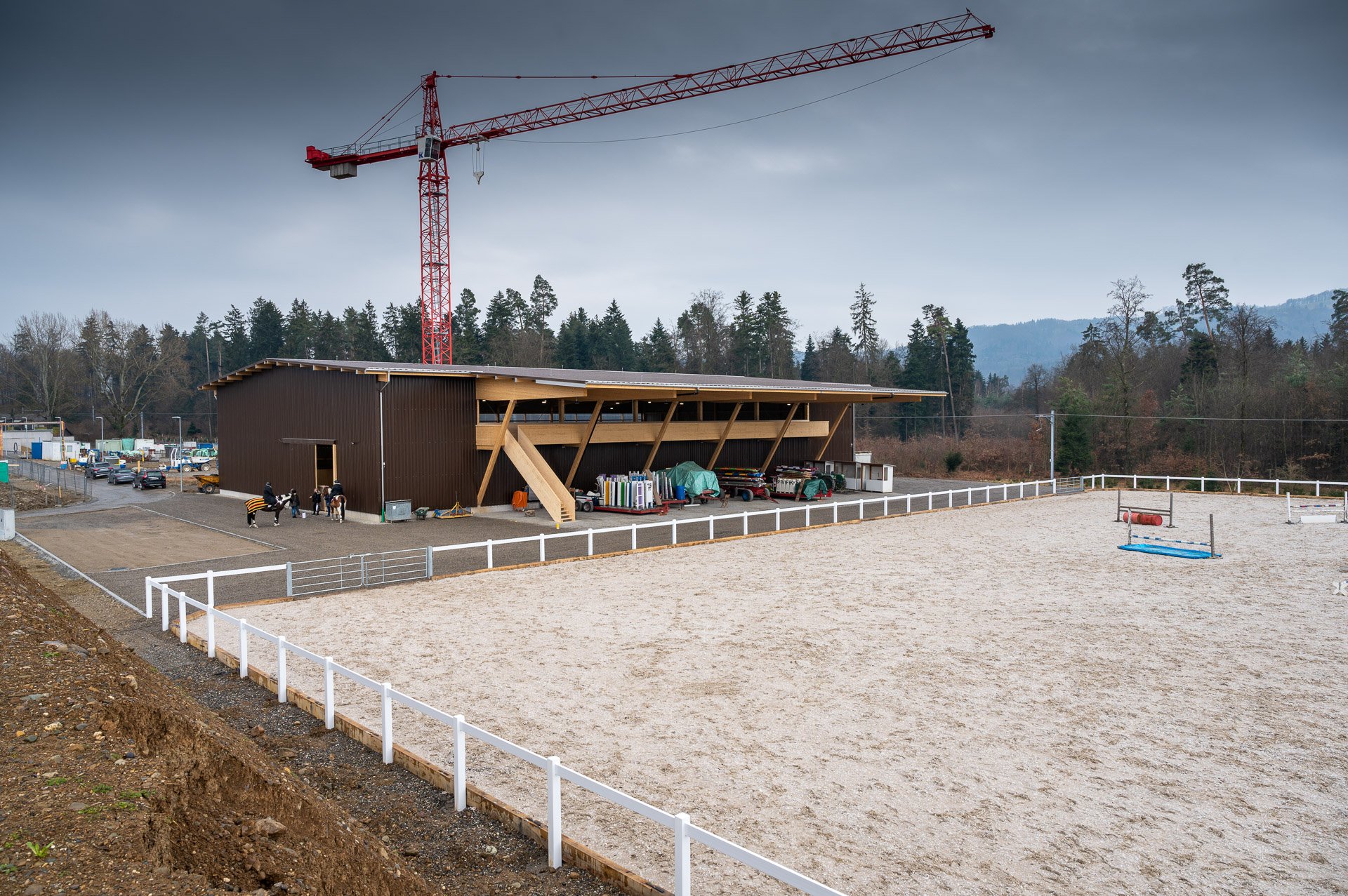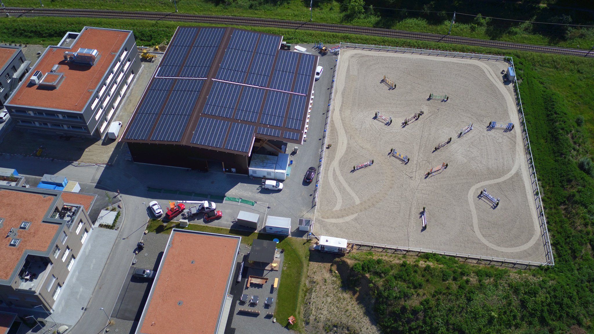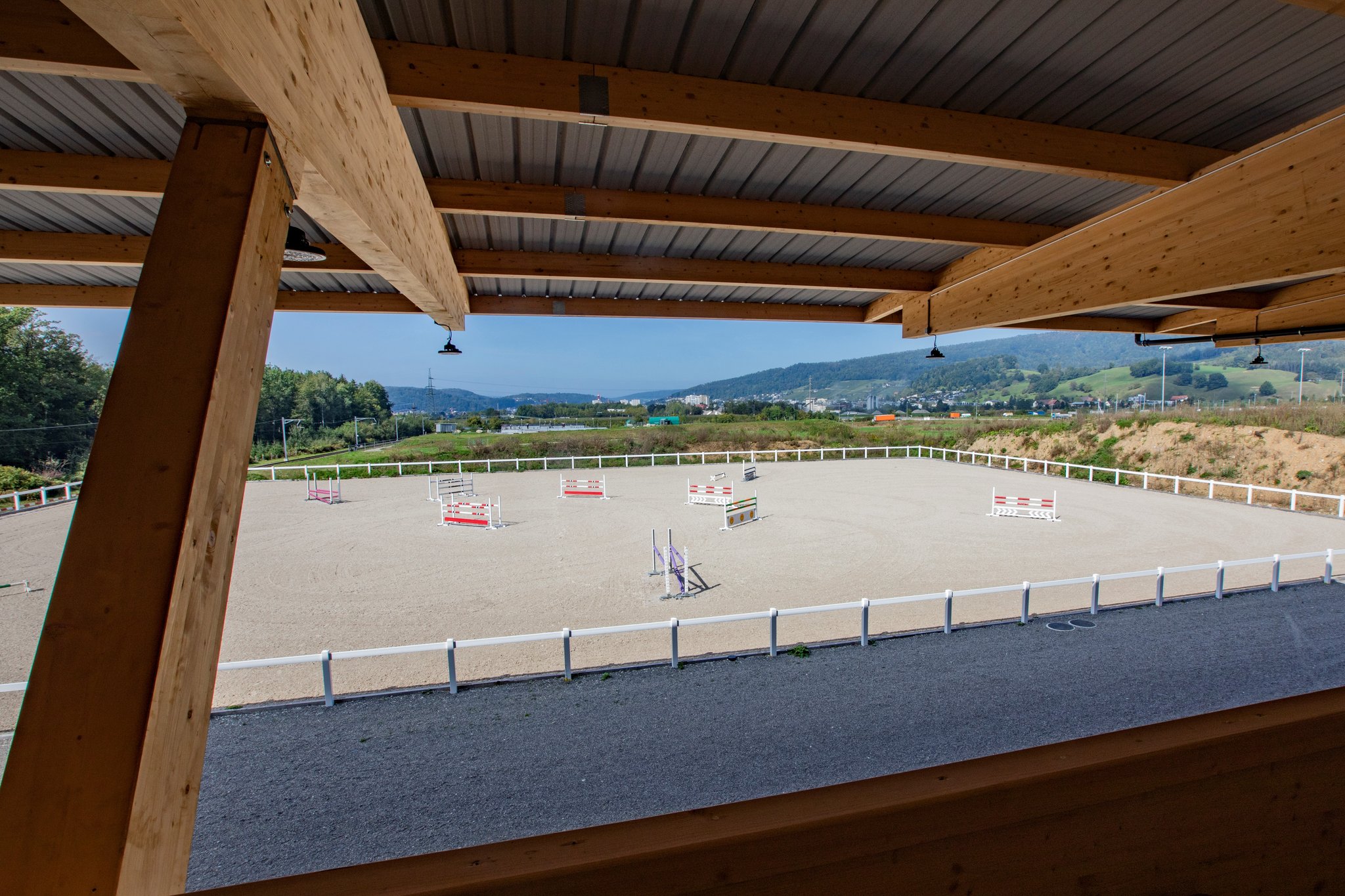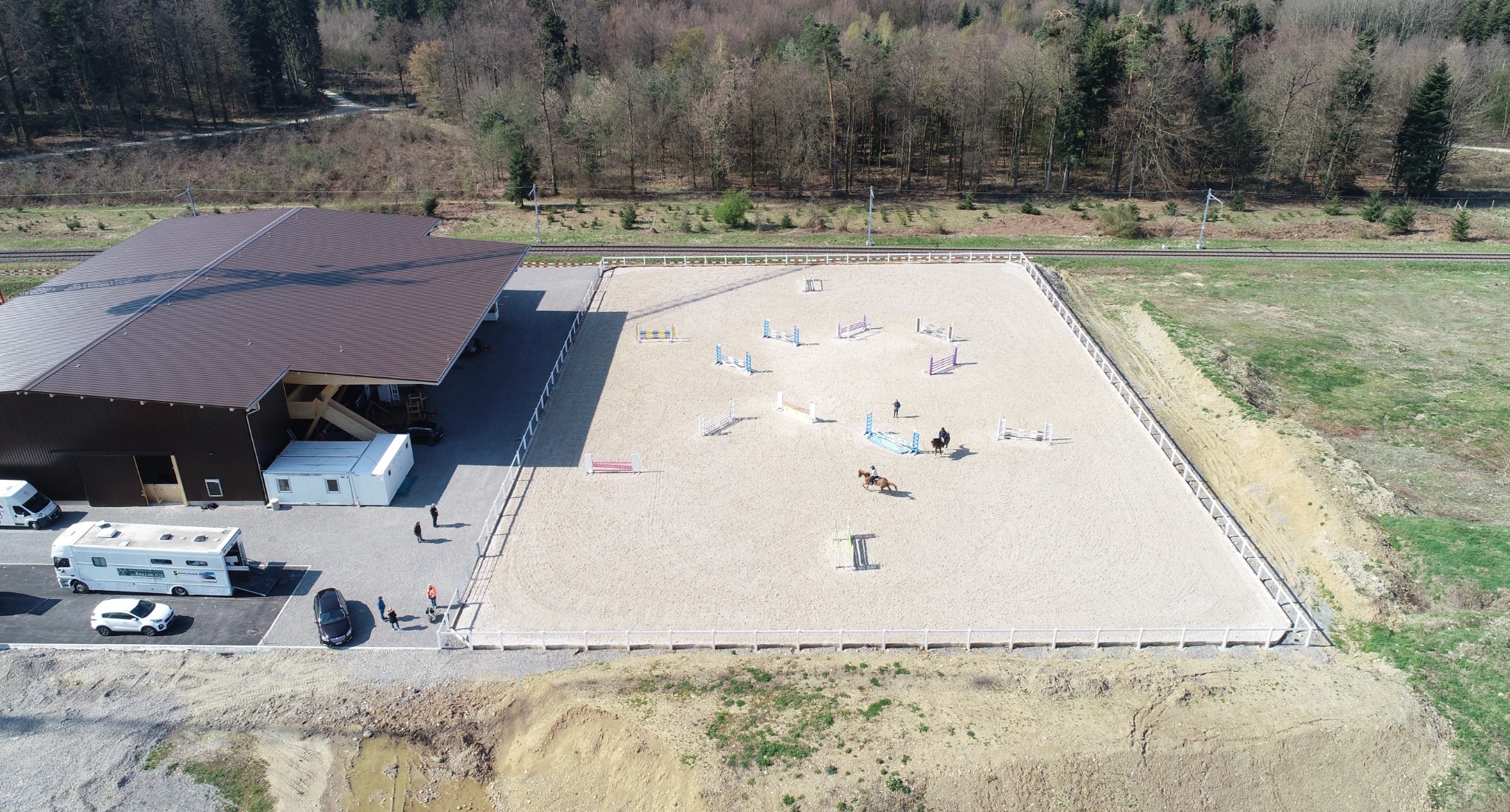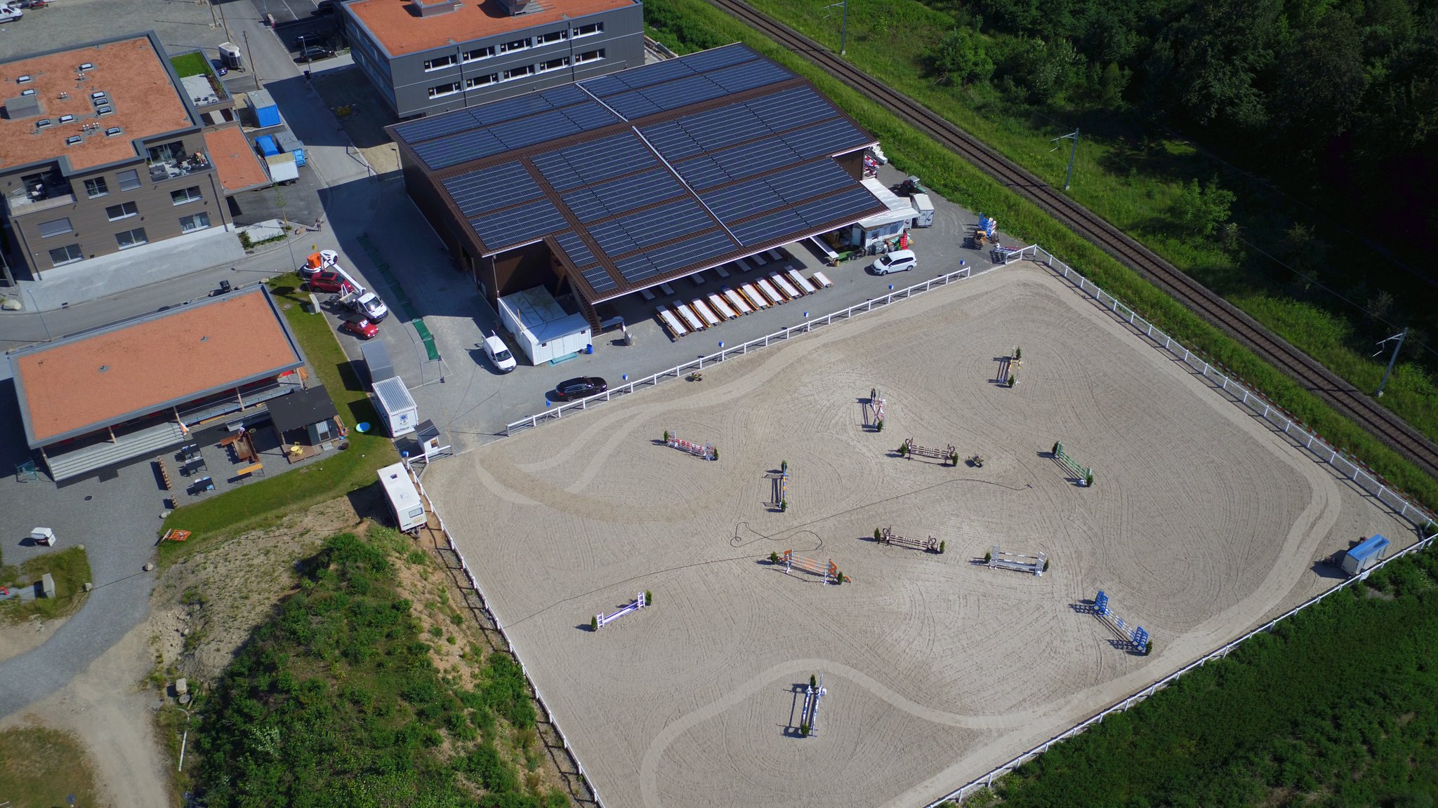 Auf einer Fläche von 50x70m werden Trainings, Spring- und Dressurturniere durchgeführt.